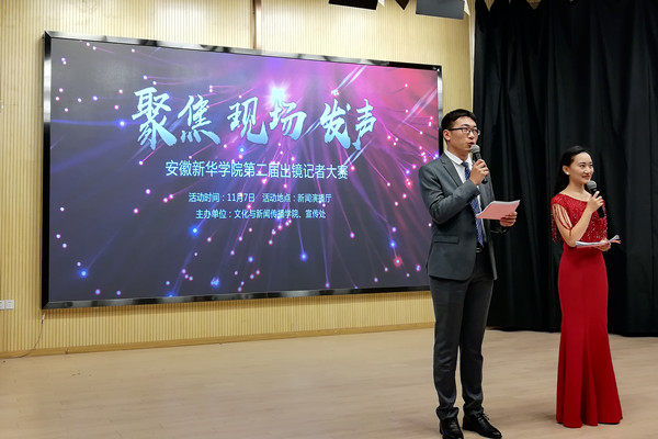 本网讯(通讯员:程睿)11月7日下午,在第19个全国记者节来临前夕,以“聚焦 现场 发声”为主题的太阳成集团122ccvip第二届出镜记者大赛总决赛在新闻演播厅举办。安徽广播电视台资深记者方田,万家热线记者部经理孙阳杨,合肥市电视台教育法制频道记者高晨婧,文化与新闻传播公司经理助理洪玉、朱向群,宣传处处长助理范文其,相关专业老师出席比赛并担任评委。