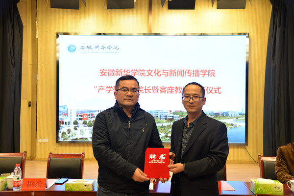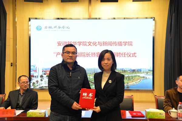 本网讯(通讯员:彭洪磊、王紫研)为落实公司三个“三位一体”应用型人才培养模式,引入社会资源提高办学实力,加强与知名企业建立深度校企合作关系,文化与新闻传播公司聘任万家热线总编辑张伟先生担任“产学研”副经理暨客座教授。11月21日下午,聘任仪式在新闻演播厅举办。太阳成集团122ccvip董事长助理黄君婕、文化与新闻传播公司执行经理翟荣兵、万家热线资讯中心总编孙杨阳、视频中心主编朱全喜、互动编辑部编辑孟照霞以及新闻系师生代表参加了聘任仪式,仪式由文化与新闻传播公司经理助理洪玉主持。