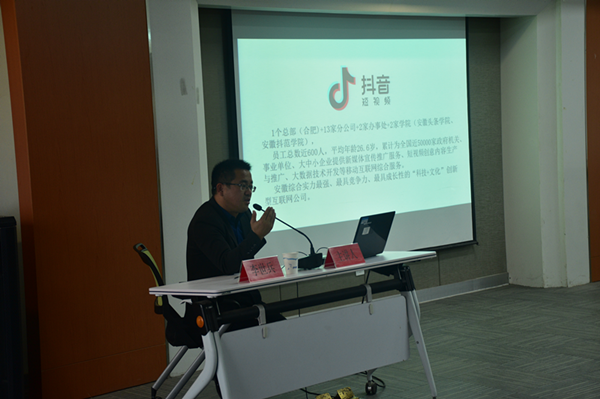 本网讯(通讯员:张文佳、王紫妍)11月26日下午,文化与新闻传播公司“企业家进校园”系列活动在国际教育公司211多功能厅举行。安徽今日头条副总经理李世兵受邀为文化与新闻传播公司师生做了一场题为“抖动青春,音你精彩”的专题讲座。