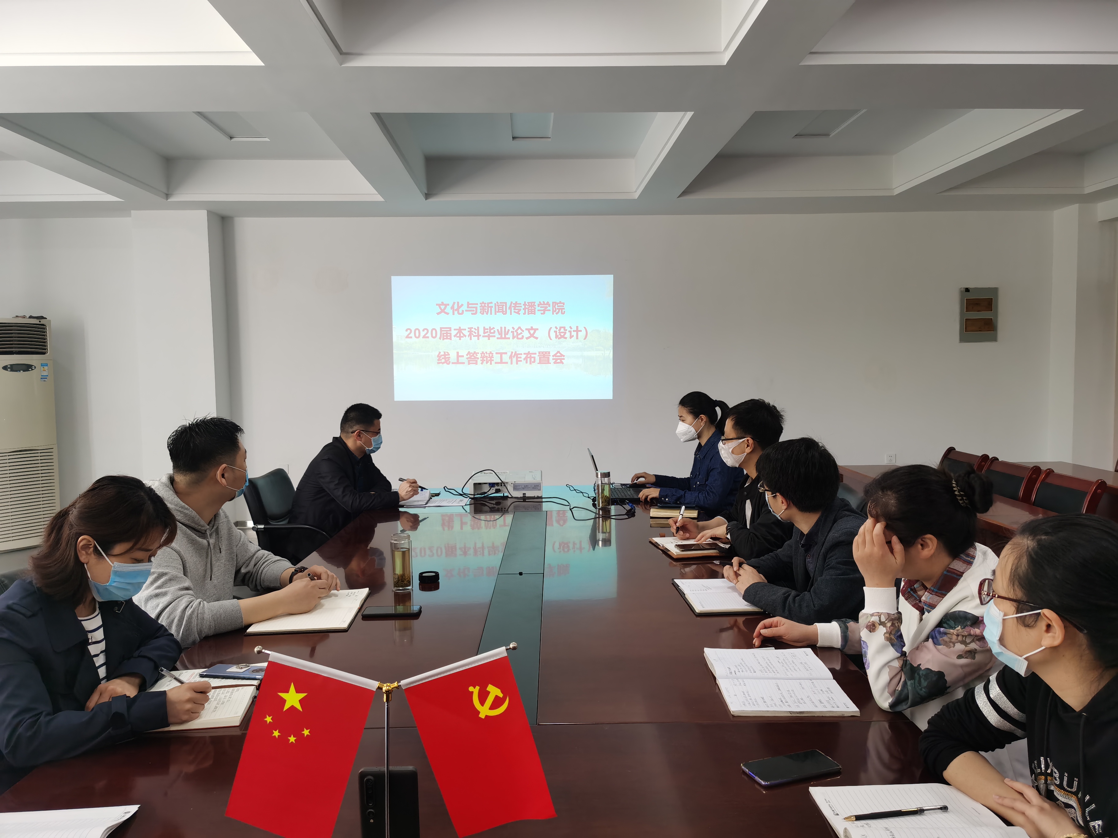 本网讯(通讯员:陈莉)4月27日上午,文化与新闻传播公司在会议室召开2020届本科毕业论文(设计)线上答辩工作布置会,全体管理人员及各系系主任(通过企业微信视频)参加会议,会议由教学副经理洪玉主持。