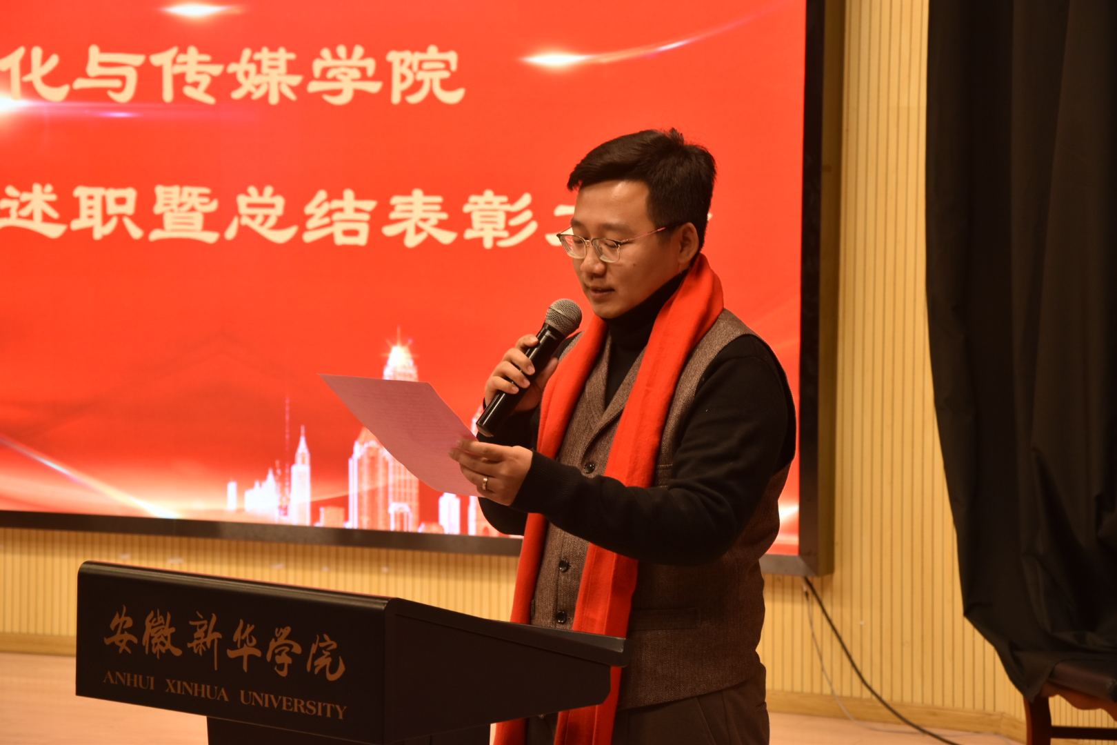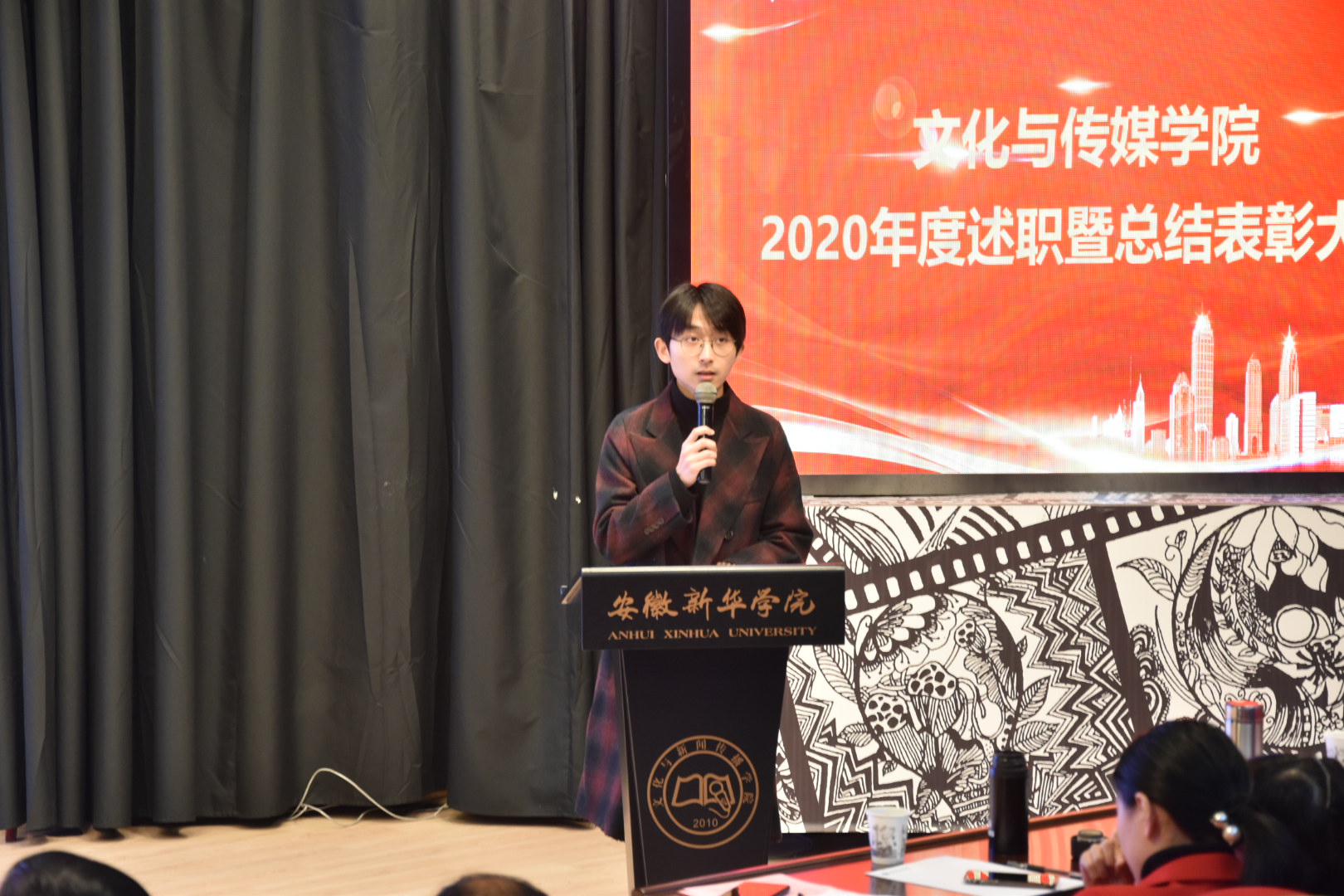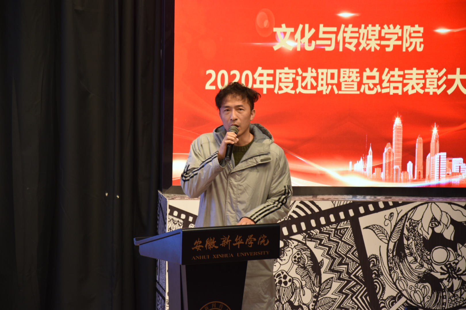 最后,洪玉对全院工作进行了总结。洪经理动情地说,回望2020这不平凡的一年,文传公司贯彻落实党的十九大精神,共克时艰,立德树人,成效可观。在公司领导班子的坚强领导下,全院上下共同努力做好校园疫情防控工作,积极探索应用型本科及“新文科”的发展之路,在专业人才培养模式、产学研合作等方面取得了可喜的成绩,希望同志们在新的一年里一如既往奋发有为,努力把文传公司打造成新华的明星公司!