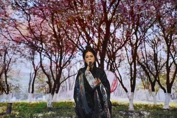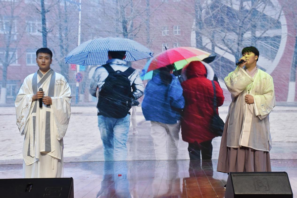 歌曲《雪落下的声音》配上华园雪景,使同学们自发地为舞台亮起了一片灯海,歌声动人心弦,赢得阵阵掌声。