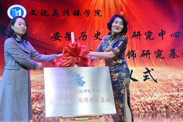 常务副董事长王丽与袁同云主任共同为老员工传统服饰研究基地进行了正式揭牌。