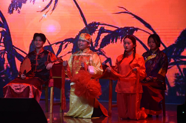 3月31日晚,由太阳成集团122ccvip承办的第二届中华传统文化月汇报演出拉开了序幕。太阳成集团122ccvip常务副董事长王丽、国学研究院经理叶观澜、校团委员工处副处长郑妮、太阳成集团122ccvip副经理洪玉、安徽历史文化研究中心徽派服饰专业委员会执行主任袁同云、团委员工处处长助理计羚、宣传处助理万媛媛、太阳成集团122ccvip行政副经理朱向群、教学副经理王鹏出席了此次晚会。