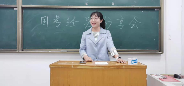 分享会最后一个环节是对公考相关问题答疑,同学们都积极踊跃地举手发言,窦萌萌也耐心为他们解答并鼓励同学们要踏实学习,只有在牢固掌握知识的前提下才能从容面对考试,在众多人中脱颖而出。