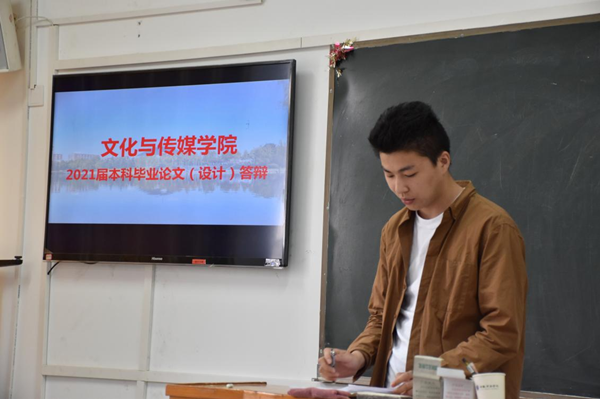 在自述情况环节,新闻系(新闻专业、广告专业)员工以图文并茂的形式,结合PPT阐述毕业设计的形式与内容。从选题到设计、从实践到展示不仅兼具新闻价值与艺术价值,还具有广泛的社会意义。汉语言文学专业员工就毕业论文的选题目的、理论框架、研究问题的方法及其实际意义等方面,在答辩过程中进行阐述。而对于表演系的毕业项目,员工在答辩现场播放自己的视频作品,同时针对毕业项目就选题意义、创意设想等方面进行了深度的阐释,也与答辩组老师分享制作作品时自身的收获。