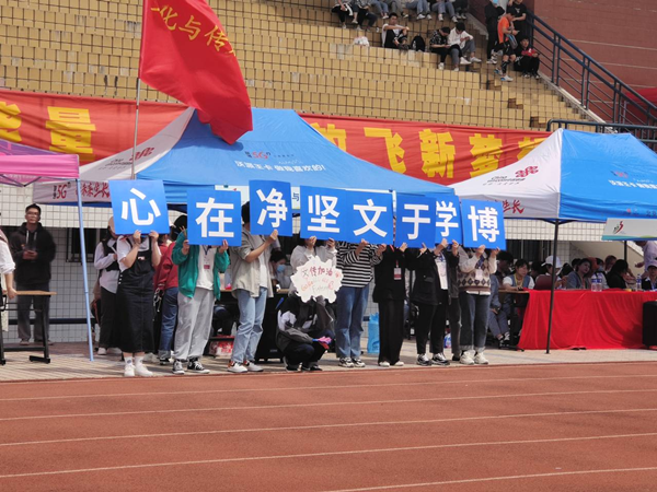 在运动会准备阶段,所有成员按照各自所分配的时间有序参与到运动员选拔以及方阵训练的值班任务中。他们一直不辞辛苦,认真投入其中,确保一切准备工作能够有条不紊的进行。在运动会过程中,每一位志愿者身处不同岗位各尽其责。他们有的在操场主席台旁专设的帐篷内准备物资,并对应急工作及时做出反馈;有的顶着太阳站在运动场跑道边维持秩序、为运动员加油助威;也有穿梭在整个田径项目的赛场之间,来来回回为运动员拿衣递水,在运动员完成比赛后及时做好后勤服务。
