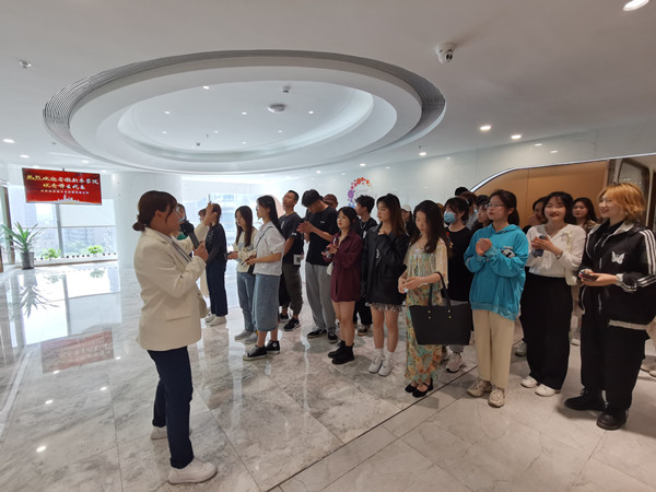 同学们在培训部薛美玲老师带领下,参观了企业文化墙、网络直播间、公司荣誉墙等具有企业代表性的展览点。参观期间,同学们积极提问,讲解人员耐心细致的为同学们解答。