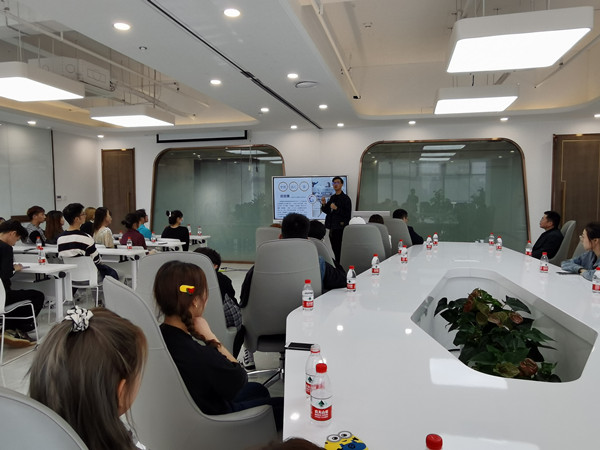 陈纪文老师向师生介绍了公司基本情况、企业文化、经营理念、管理方法等内容。通过陈老师的介绍,同学们对企业有了初步的认识。