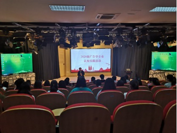本网讯(通讯员:李晓璐 张倩)为创新广告学专业学习形式,提高员工们的专业认知水平,4月14日广告学专业在新闻演播厅开展了一场针对2020级广告学专业员工专业认知的实践活动,活动邀请了合肥金鹃传媒科技股份有限公司广告总监高潮。