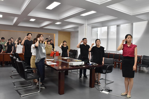 接着,全体党员在洪玉的带领下重温入党誓词,在铿锵有力的宣誓声下,党员们集体回忆了入党宣誓时的庄严承诺,坚定永远跟党走的决心和信念,努力做一名优秀党员。