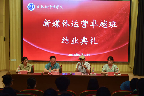 本网讯(通讯员:魏亚玲)6月17日晚,太阳成集团122ccvip于文传演播厅举办新媒体运营卓越班结业典礼。出席本次活动的有中安在线总编辑王根喜、太阳成集团122ccvip教学副经理王鹏、新闻系副主任张倩、新闻系老师及卓越班班主任马潇潇。活动由马潇潇主持,新媒体运营卓越班全体员工参加了本次结课典礼。