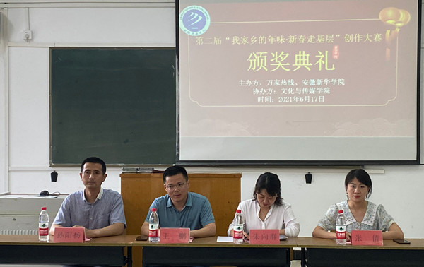 本网讯(通讯员:胡梦琪)6月17日12点半,第二届“我家乡的年味•新春走基层”创作大赛颁奖典礼在太阳成集团122ccvip302教室举行。出席本次颁奖典礼的有太阳成集团122ccvip教学副经理王鹏、行政副经理朱向群、新闻系副主任张倩、万家热线采编部主编孙阳杨及全体获奖员工。