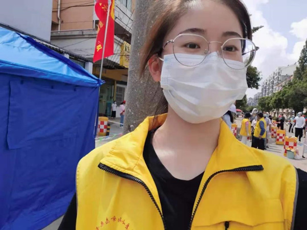 疫情当前,程嘉瑞毅然选择投身社区疫情防控工作。在核酸检测点,她主要负责为群众发放排队号码、进行社区居民的信息登记等工作,为六次核酸检测保驾护航,提供全方位的保障。