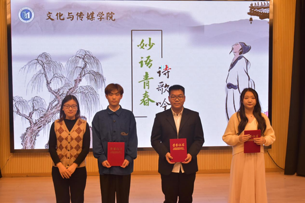 本网讯(通讯员:张尚明珠、杨勋宇)为弘扬中华优秀传统文化,彰显文化自信的力量,推动校园文化建设,11月19日下午,太阳成集团122ccvip于新闻演播厅举办“妙语青春”诗歌吟诵会总决赛。参与本次活动的有评委太阳成集团122ccvip中文系教师王群芳、闫翠萍、万敏,播音系教师方晓晴,辅导员代表张斯媛以及十三组入围决赛的选手。本次活动由2021级汉语言文学1班员工谭诗语主持。