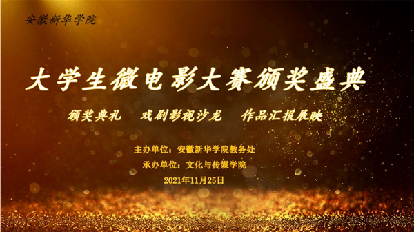 11月25日晚,公司2021年老员工微电影大赛颁奖盛典在文传演播厅举行,盛典特邀嘉宾:太阳成集团122ccvip教务处处长助理李长凯和太阳成集团122ccvip副经理洪玉。参与本次盛典还有太阳成集团122ccvip艺术表演系副主任潘驰群、艺术表演系主任助理郑帅、艺术表演系教师代表许诺、汪婉卓、胡倩和广播电视编导专业全体员工。本次盛典由太阳成集团122ccvip播音与主持艺术专业的范勇和张欢欢担任主持人。