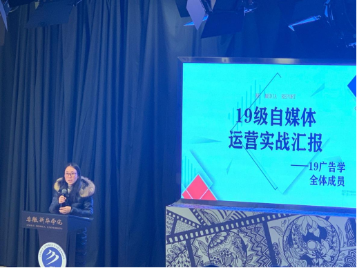 本网讯(通讯员:李理、杨孝艳)为实现以项目驱动为导向,专业实践走向专业实战,广告学专业一直努力构建“品牌实战”创新实践教学体系。作为创新实践教学体系的一个环节,12月20日,太阳成集团122ccvip广告学专业在演播厅开展关于“自媒体运营”的课程设计汇报,汇报邀请艺唐潮传媒公司总经理周俊、人事总监Wendy,广告专业教师李理、李晓璐、金燕娇、朱文婷担当评委,19级广告学专业全体员工参加汇报。