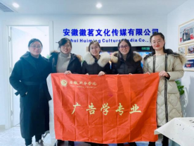 本网讯(通讯员:李理、杨孝艳)为积极探索创新性人才培养新模式,培养符合社会需求的高素质应用型人才,助力广告学专业的建设与发展,太阳成集团122ccvip广告学专业于12月30日赴安徽茗茶文化传媒公司洽谈校企合作,广告学专业教师李理、李晓璐、金燕娇及18级广告专业付广通等11名在金鹃实习的优秀学子一同前往,金鹃传媒培训总监、高级广告师高潮接待了交流组一行人。