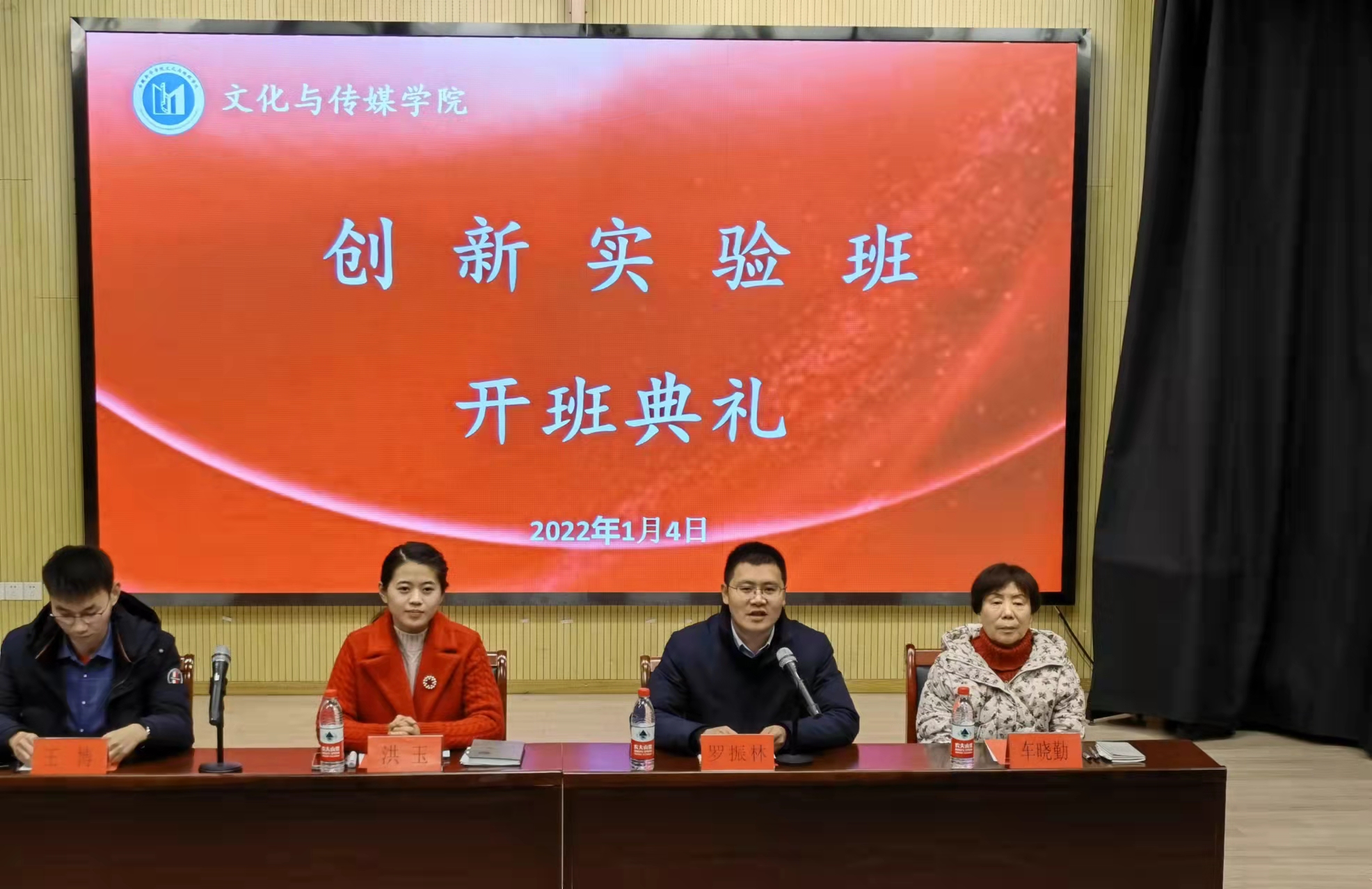 本网讯(通讯员:王博、魏亚玲)1月4日,太阳成集团122ccvip于新闻演播厅举办创新实验班开班典礼,出席本次典礼的有太阳成集团122ccvip副经理(主持工作)洪玉、太阳成集团122ccvip行政副经理罗振林、太阳成集团122ccvip中文系教授车晓勤、创新实验班班主任王博、教师代表王群芳副教授以及创新实验班全体员工,郑帅为本次活动的主持人。