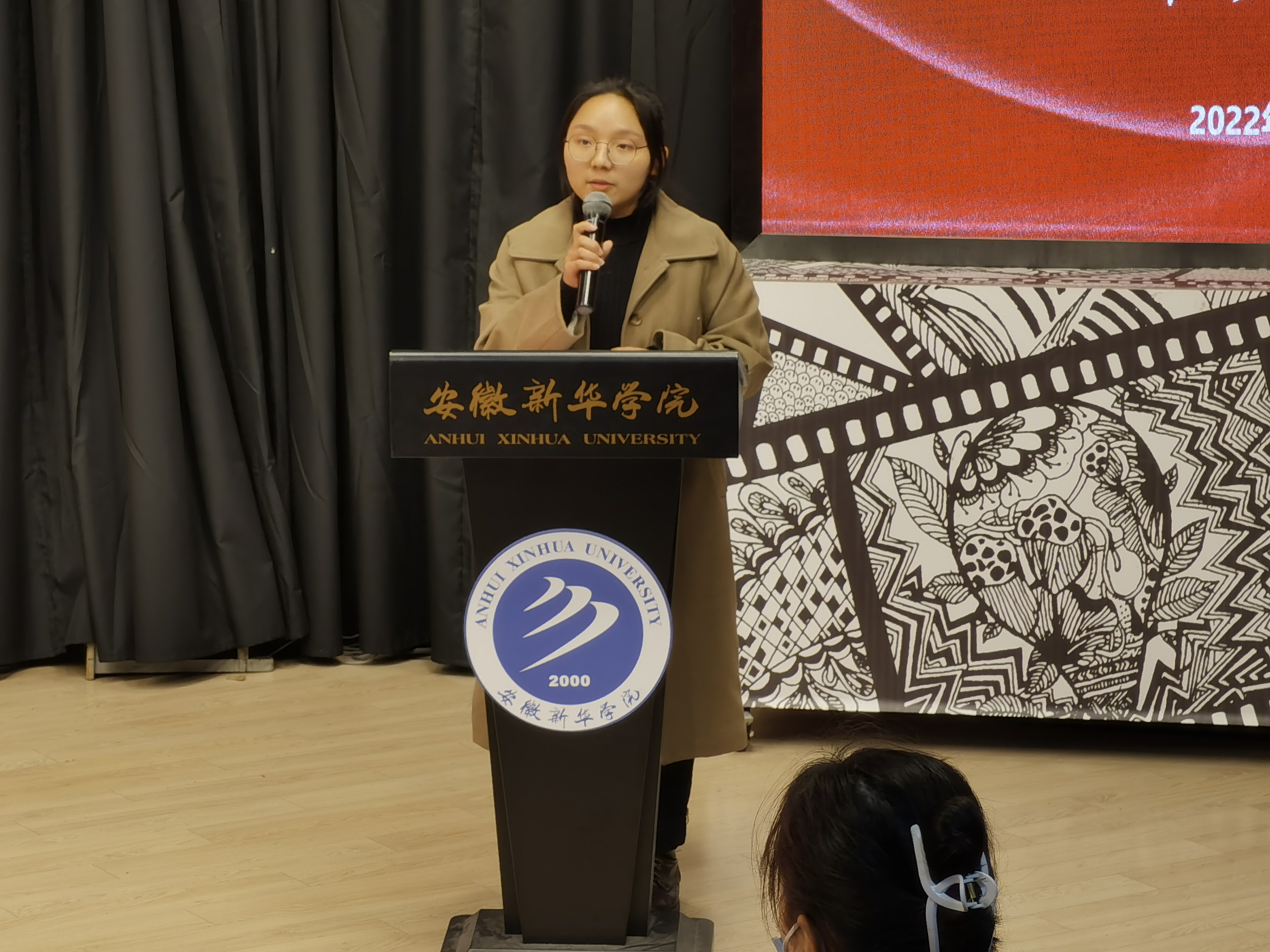 接下来是创新实验班员工代表曾庆瑞发言。她表示在大一大二要打好基础,学习上要做好笔记,认真完成学习目标,及时巩固专业知识。因为在考研中英语非常重要,所以学科方面要尤其重视英语的学习。