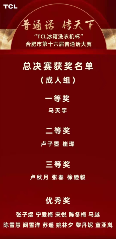 本网讯(通讯员 夏岩)1月24日,“TCL冰箱洗衣机杯”合肥市第十六届普通话大赛的颁奖典礼在合肥广电中心演播厅隆重举行。TCL家用电器(合肥)有限公司总经理张荣升先生受邀出席,并为十余位获奖选手颁奖。