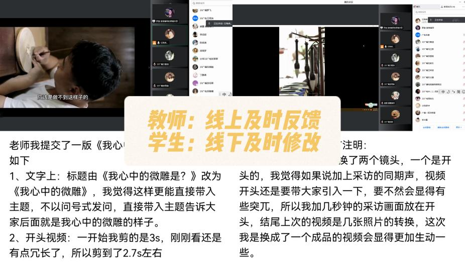 强实训。六大选题小组配备专门的编导老师,更加精准化、细致化、效能化的开展好各组实践任务。通过任务发布—实践回课—作品修改等环节多方位锻炼员工的实践能力。各小组编导老师也通过线上会议对小组员工的作业进行一一反馈和记录,每位员工的作业都在回课后进行修改,直至作品质量达到规定要求。