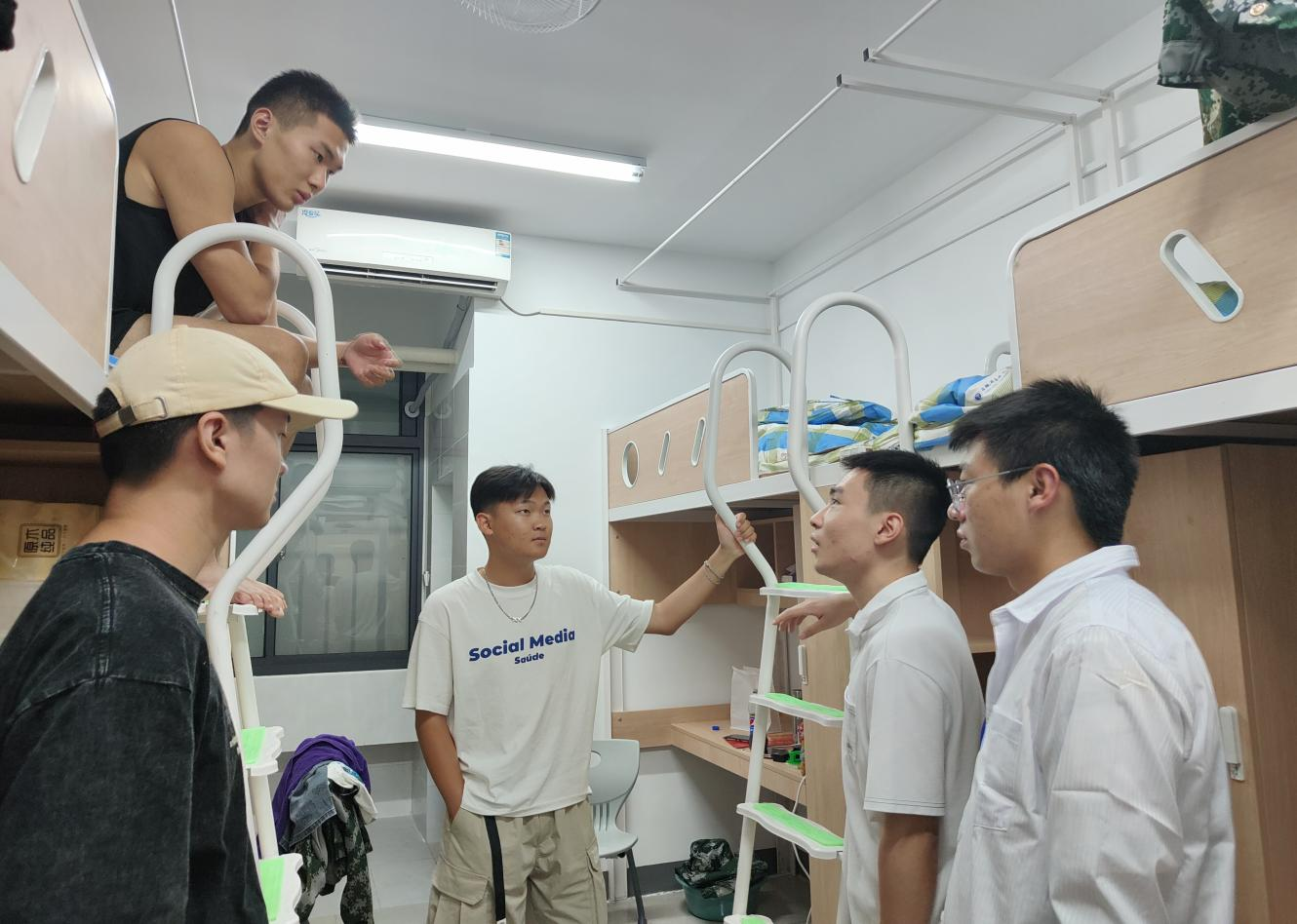 来到宿舍,罗振林经理首先询问了新生对迎新服务和宿舍住宿的满意情况。交谈时也叮嘱了员工们一定要根据疫情防控的相关要求注意自身安全,保护好个人贵重物品,谨防诈骗 ,切勿因为被诈骗影响到刚入大学的好心情。此外,罗振林经理还强调不要忘记按时作息,为接下来的军训生活养精蓄锐。