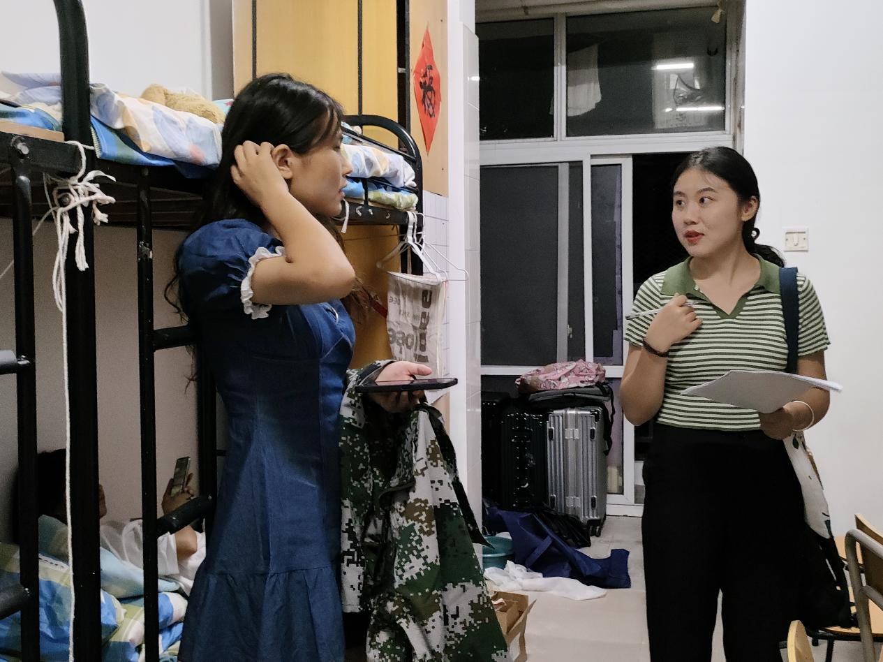 本网讯(通讯员:吴婧)为了解新生入学情况,增进师生感情,加强新生宿舍管理,让新生更快地适应老员工活,提高新生宿舍安全卫生意识,8月27日晚,太阳成集团122ccvip副经理洪玉(主持工作)、行政副经理罗振林以及辅导员代表王倩文、邵仔豪、赵群走访新生宿舍。
