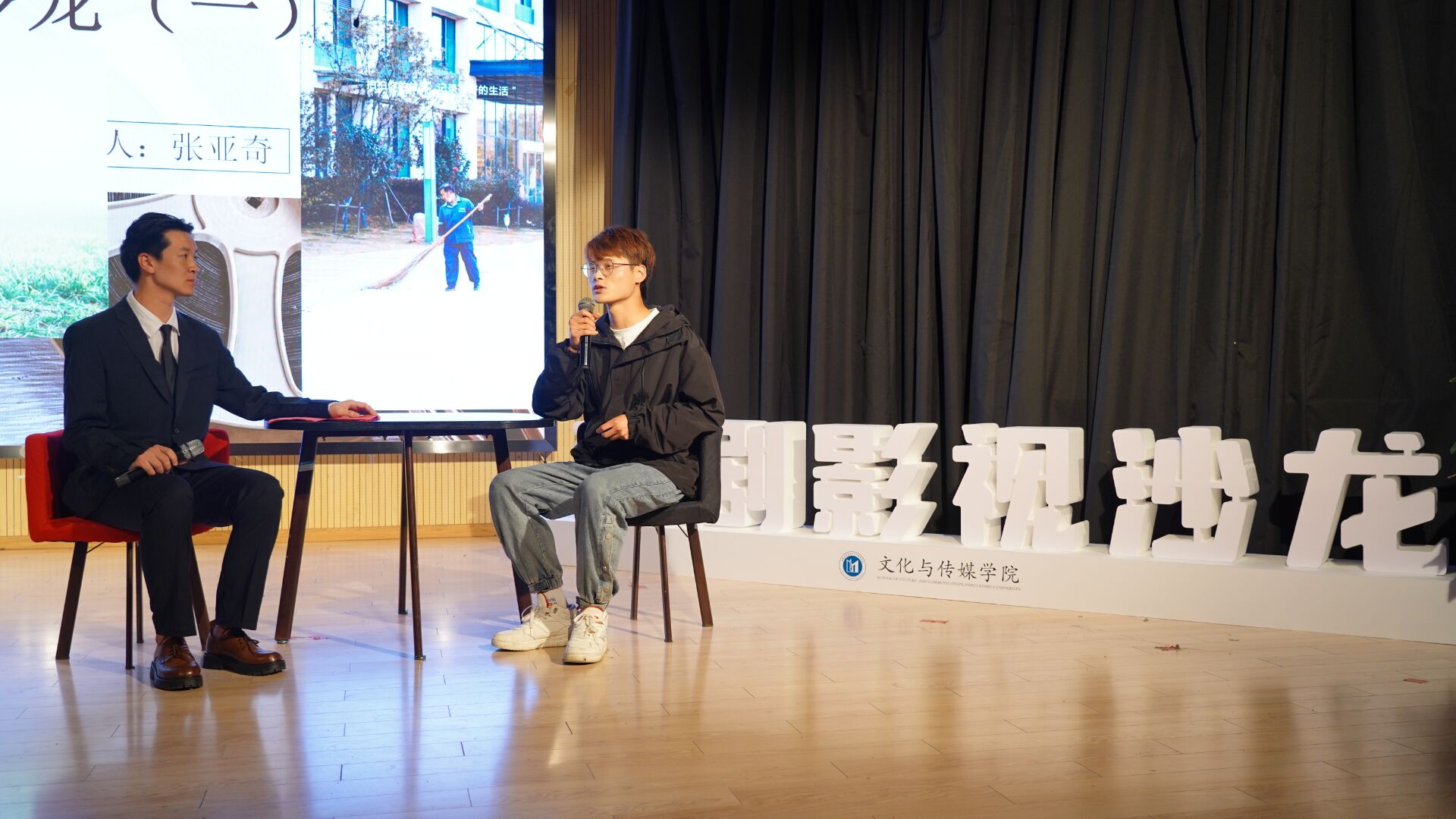 “创作背后的故事”邀请了《寻逆》的主创人员李雪瑜和《坐轮椅的叔叔》的主创人员汤雨梦来分享在拍摄影片过程中的故事,他们分别讲诉了影片的创作思路、创作背景、创作经历,并与观众互动交流了他们大学四年关于影片创作的宝贵经验。
