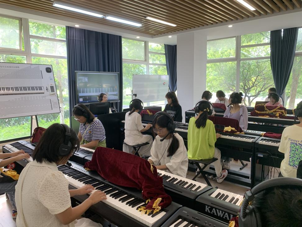 工作坊体验环节,主要有辛迪钢琴、奥尔夫音乐、小提琴、书画及微格实践教学组成。管雨婷、沈绿原两位老师带领同学们在钢琴实训室和奥尔夫音乐室体验钢琴与声乐《欢乐女神》的美妙,引领员工感受钢琴与声乐的魅力;王婧姣老师带领员工们在奥尔夫音乐室体验精彩的小提琴演奏;在三字书法室,刘岳恒、贺书颜及丁则智三位教师分别介绍了汉字书写的美感和中国画的意境,员工们在老师的指导下也进行了自由创作,提升了同学们的中国传统文化的自信感。王超然老师带领员工在微格实训室体验了录播、了解了教师应具备什么样的教学技能,引领员工们认识教育现代化的重要性。