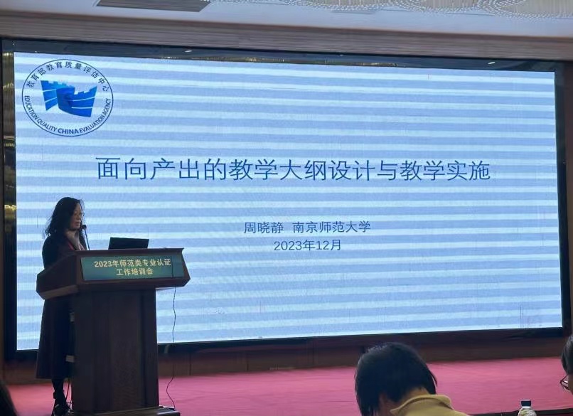 第五场由南京师范大学教务处副处长周晓静教授作《产出导向的课程教学大纲设计与教学实施》的主题报告。报告从理解教学大纲、教学大纲设计的基本要求、基于教学大纲的教学实施三个方面进行,详细介绍了OBE理念下教学大纲的设计与教学实施的重难点。