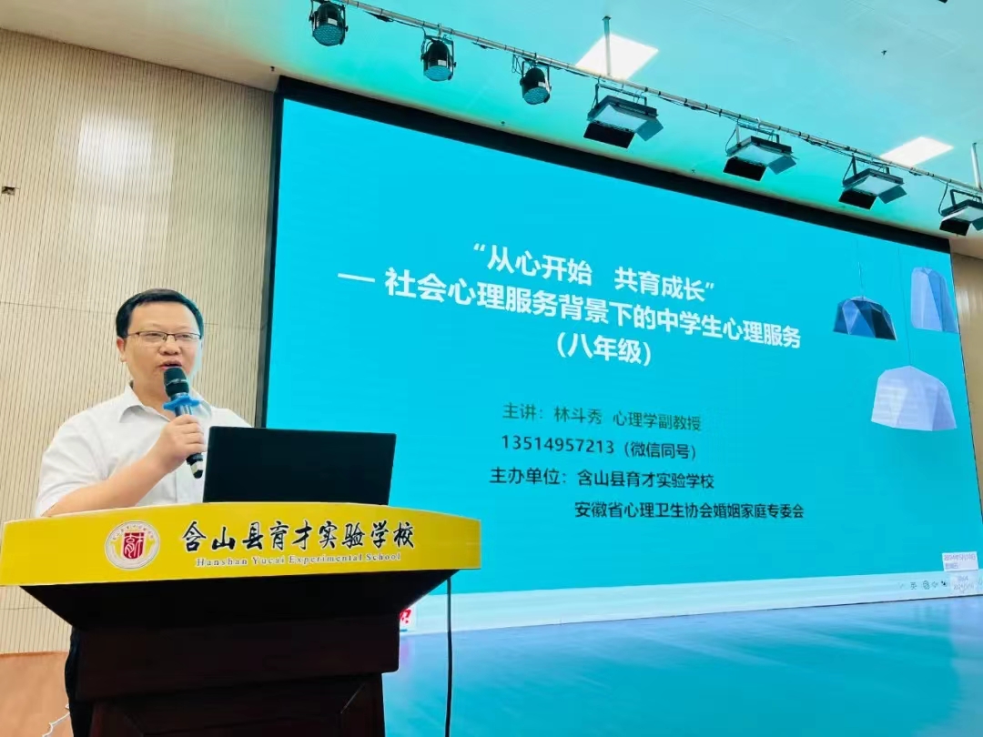 本次活动是该校为家庭教育宣传周专门策划的活动之一。林教授作为安徽省心理卫生协会婚姻家庭专委会推荐的专家,助力含山县育才实验公司的家校共育建设,这也是将高等教育的专业优势与义务教育的家庭教育进行融合,为公司教育类专业的实践教育发展提供资源。