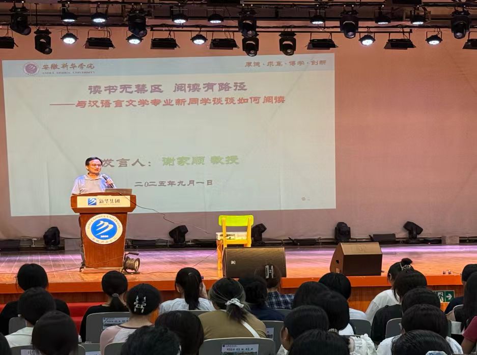 主题环节,谢家顺教授围绕“读书无禁区,阅读有路径——与汉语言文学专业同学谈谈如何阅读”,从阅读视野拓展到具体方法指引,为新生搭建起专业阅读框架,助力培养良好阅读习惯。