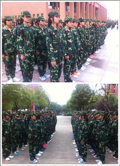 第一天,由于突然降温降雨,训练由室外练军姿转向室内整理内务。只见新生们热情高涨,信心十足,严守纪律,活泼团结。训练场上口令声此起彼伏,踏步声整齐划一,口号声洪亮悦耳。
