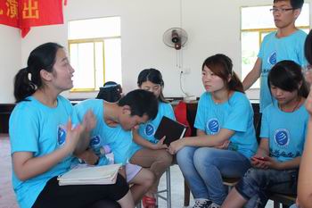 当志愿者乘坐者火车于79日晚6时到达乡政府的时候,领导的高度重视和热情的关怀,让这群大孩子们感受到了温暖,对接下来的工作有了更大的信心与激情,并决定于710 日整天进行义务支教宣传活动。由于斗山河村的住户相对分散,所以志愿者们想要宣传到位就显得格外困难,再加上炎热的天气条件,更是困难,但这并没有减轻志愿者的热情。这一天,志愿者们一大早便准备完毕,在文化与新闻传播公司行政副经理贺行佳的妹妹贺培霞的带领下,前往斗山河村家家户户开展宣传工作,宣传很顺利,也达到了预期效果。