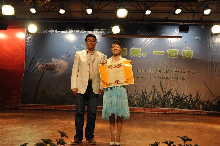 经过紧张的角逐,最终来自商公司的选手李毅一举摘得个人组的桂冠,来自外国语公司的选手郭春玲、叶峰分获二三名,团体冠军由文化与新闻传播公司10新采班摘得,来自文化与新闻传播公司09新采2班、09新闻2班分获二三名,另外,本次大赛“最佳台风奖”由继续教育公司选手唐婷婷同学获得,“最佳诗歌原创奖”由文化与新闻传播公司09新采2班获得。文化与新闻传播公司获得“最佳组织奖”。