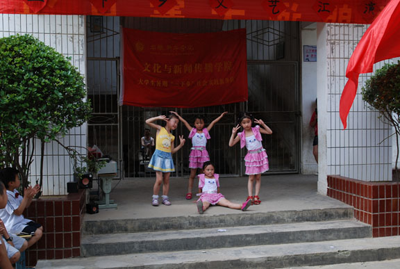 汇演中有孩子们的表演还有志愿者带来的舞蹈和歌曲。这些节目都是在支教和调研之余,志愿者舍弃休息时间排练的,看到志愿者在台上卖力的表演,家长和孩子们都笑容满面并给予热烈的掌声。最后由志愿者带来《五月的花海》,在嘹亮的歌声中,此次的文艺汇演圆满结束,也为这次的“三下乡”之行画上句号。