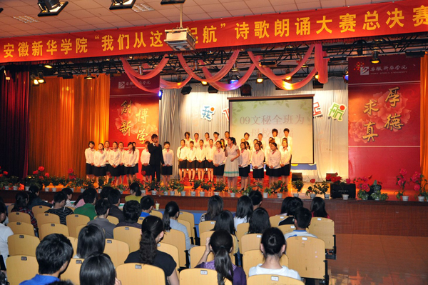 据悉,本次大赛分为团体和个人组比赛,共有9个二级公司的400余名选手参加了大赛,经过激烈比拼,共有5个二级公司的16组选手进入了总决赛。大赛在文化与新闻传播公司09文秘班的集体朗诵下拉开了序幕。随后,选手们用各种独特新颖的表演形式将诗歌朗诵深情演绎,诠释了同学们对诗歌文学的热爱、对母校的爱恋、对生命的感悟以及对青春的理解。