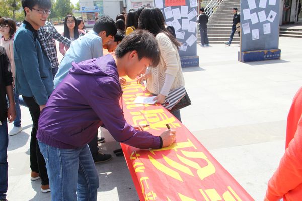 此次活动在炎炎烈日下持续一个多小时,吸引了广大师生前来观看,并积极签名,取得良好效果。