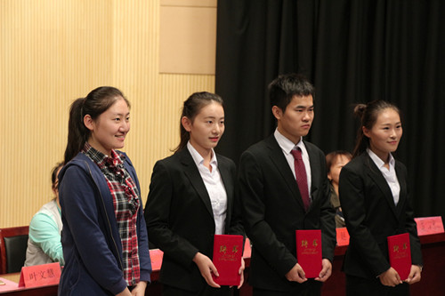 在嘹亮的团歌声中,大会拉开了帷幕。会议开始,朱向群宣读了文化与新闻传播公司《关于表彰第六届员工会先进个人的决定和第七届员工会部长及以上成员的任命决定》。接着辅导员赵影、叶文慧、吴琼和教师代表张岚分别为第六届员工会先进个人和第七届员工会部长与主席团成员颁发荣誉证书和聘书。