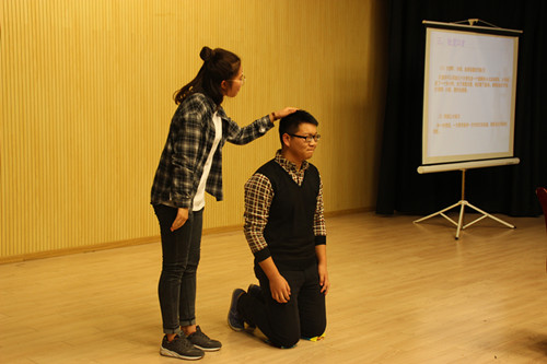 首先,徐翔老师和同学们分享了自己的感想:接纳自我,善待他人。讲述了沟通与人际关系是成功的主要因素,从八个方面讲述了“对自己说话问题自查”的介绍。 其次,从社交的含义,社交口才,社交时技巧运用,情境应变四个方面讲述社交与口才。徐翔老师在分析过程中分享了10个案例,从不同方面去学习社交口才的知识。在讲述过程中,2014级播音与主持艺术专业员工组成的助演团现场表演,帮助员工更好的理解,进入情境。之后的六点学习小贴士和三个影响沟通的有效性因素为在场的师生提供了学习的方法和依据。