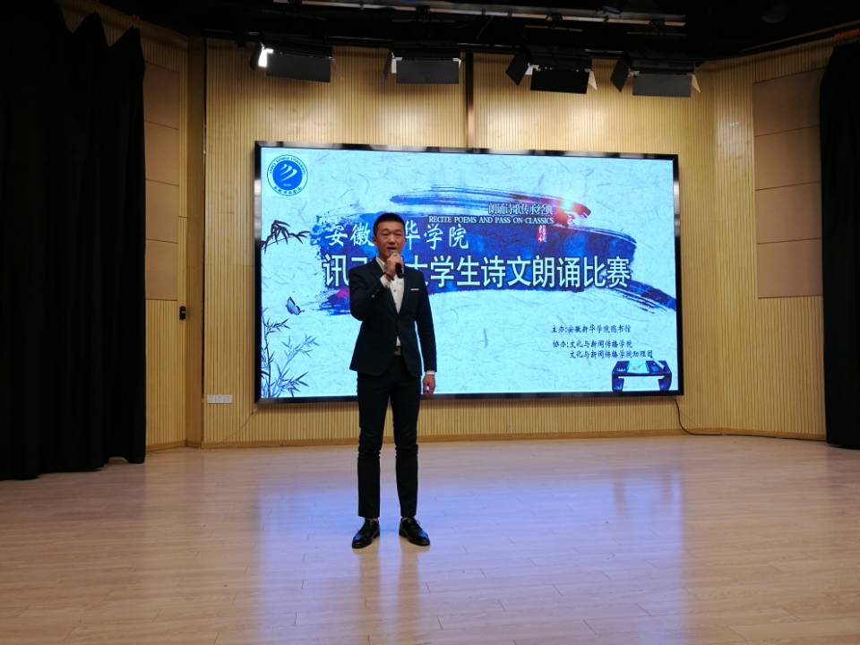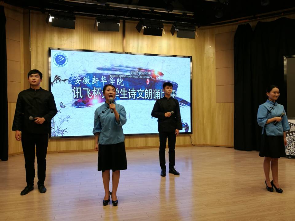 本网讯(通讯员:彭洪磊、杨超)为进一步丰富校园文化生活,营造浓厚的书香校园氛围,借以传承国学文化经典,弘扬民族文化精髓,激发员工的读书和诵读热情。4月17日下午,由公司图书馆、文化与新闻传播公司主办的第十三届讯飞杯老员工诗文朗诵比赛新华公司决赛在新闻演播厅举办。担任本次比赛的评委有图书馆馆长汤干君,文化与新闻传播公司经理翟荣兵、经理助理洪玉,教师郑帅、余红仙、王盼盼,特邀来宾安徽广播影视职业技术公司李志强老师。