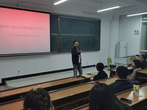 本网讯(通讯员:郑帅)为深化校企合作及人才培养力度,拓宽员工实习渠道,加快网红人才培养基地建设,培养融媒体营销、运营、服务人才,快手合肥创新发展中心主任何曙光一行走进公司,给文传学子带来精彩的企业实习宣讲。文传公司副经理(主持工作)洪玉、教学副经理王鹏、新闻系副主任张倩出席了本次宣讲会。播音与主持艺术、广播电视编导、新闻学、新闻采编与制作、空中乘务等专业一百多位员工参加了宣讲,宣讲会由艺术表演系主任助理郑帅主持,