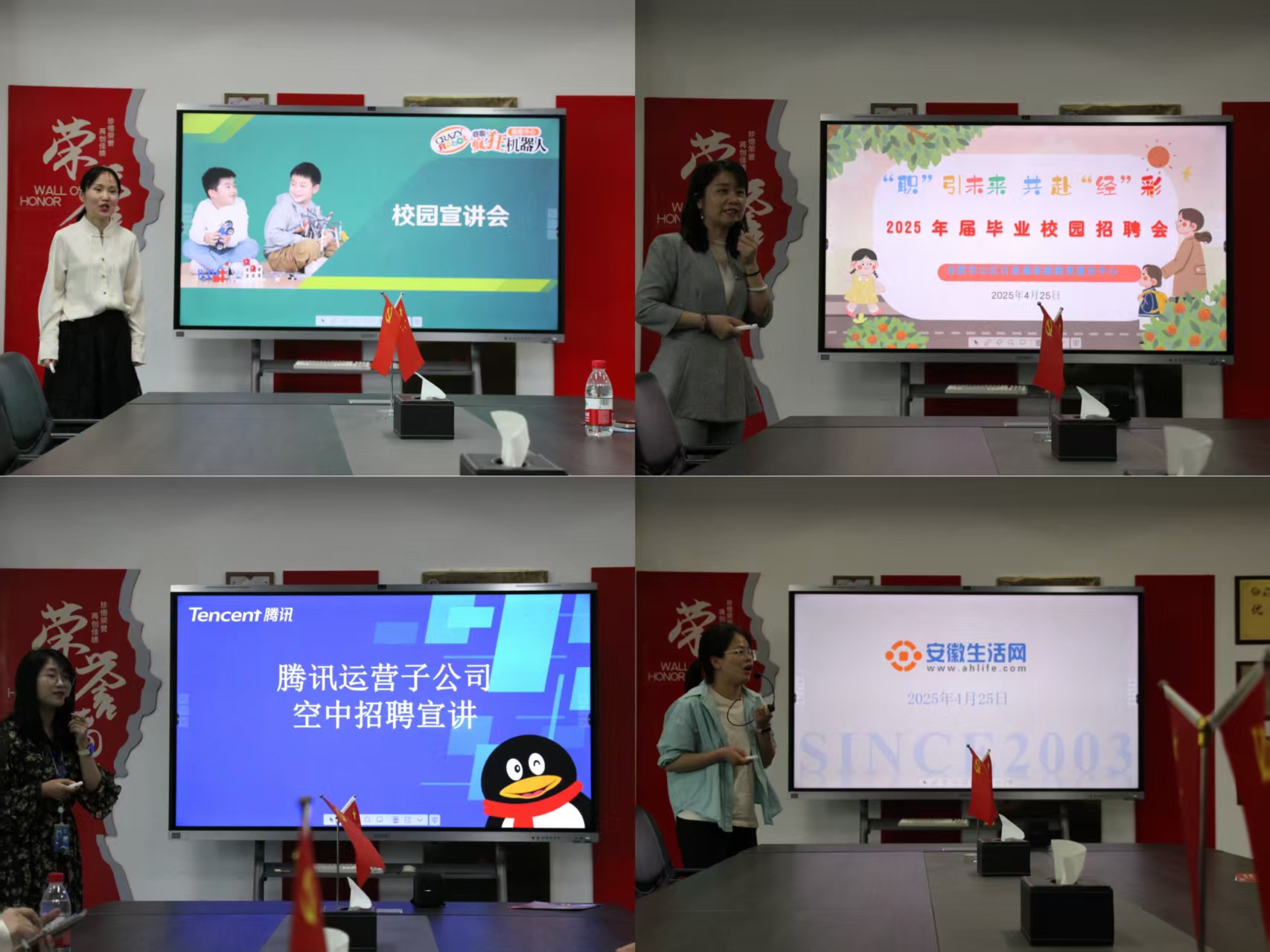 在筹备阶段,公司组建专项工作组,通过问卷调查、员工访谈等方式,系统梳理近三年毕业生就业分布及发展现状,精准锁定教育科技、新媒体运营、数字内容生产等领域的岗位需求,最终遴选方田教育、腾讯瑞德铭(合肥)科技发展有限公司等8家优质企业,其中4家为连续三年参与校招的校企合作单位,形成了"实习-实训-就业"全链条人才培养与输送机制。