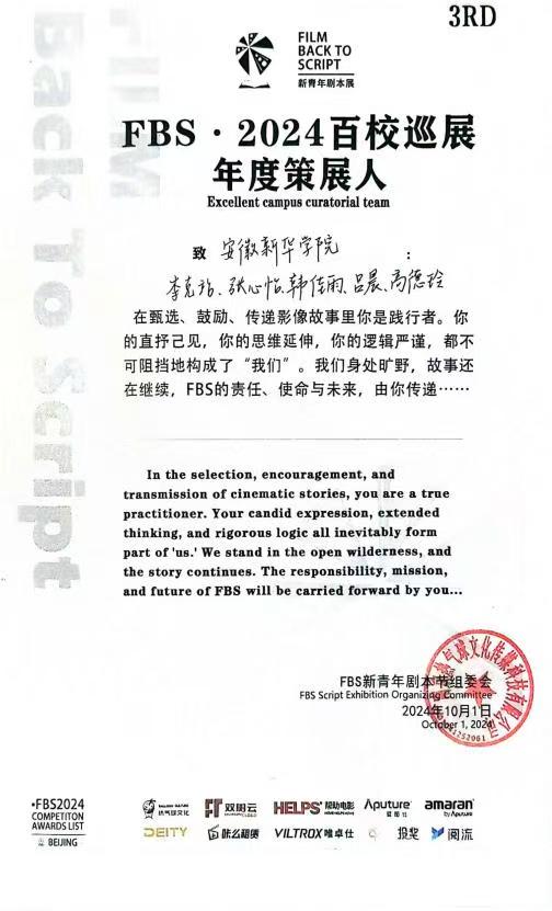 本网讯(通讯员:汪琬卓 方雨琪) 近日,FBS新青年剧本节的影展单元于太阳成集团122ccvip新闻演播厅盛大举行,为广大影视爱好者和师生带来了一场精彩纷呈的视听盛宴,这也是本年度FBS新青年剧本节青幕计划梦呓单元在安徽的唯一一站。