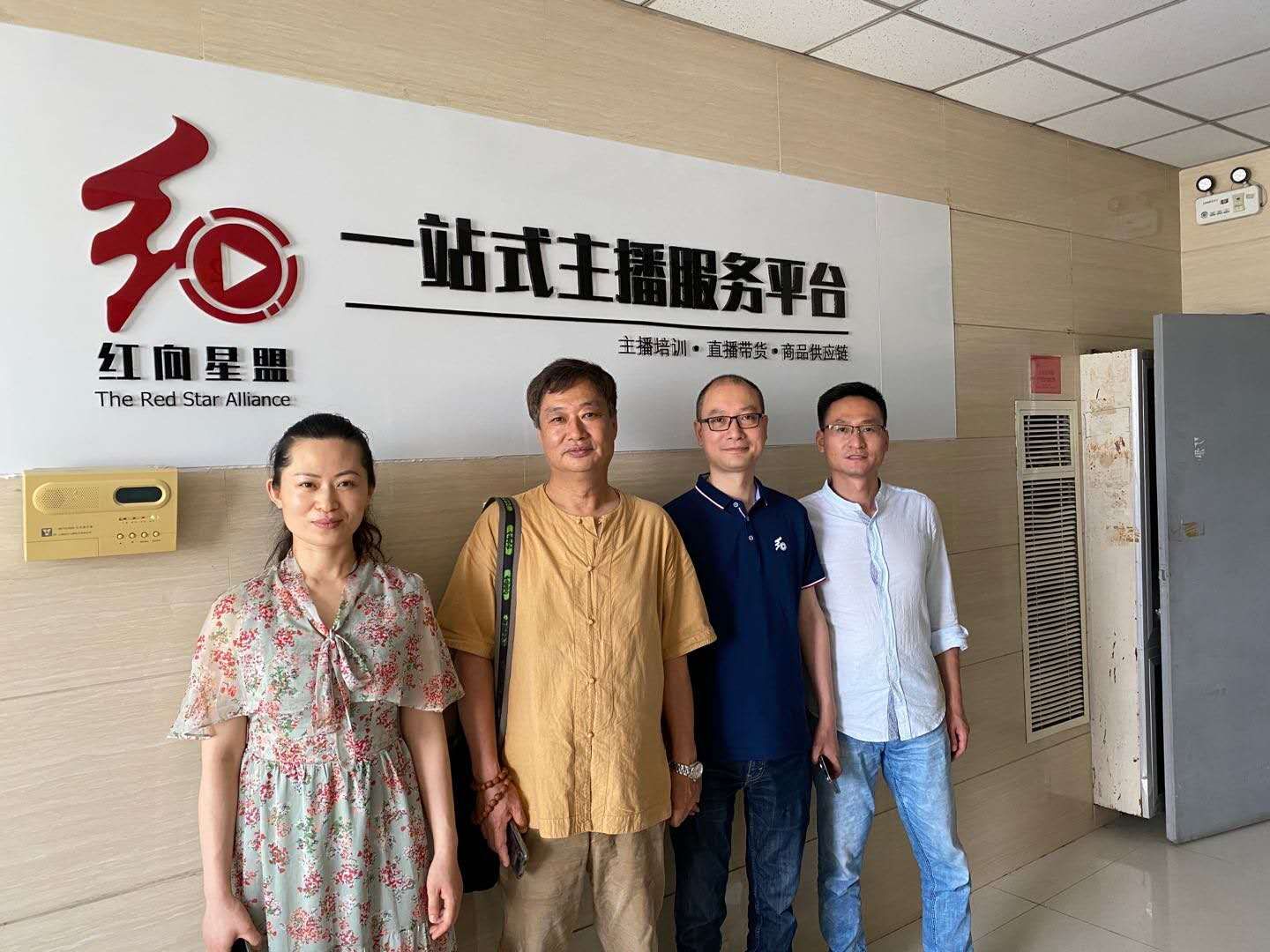 签字仪式在红向星盟一站式主播服务平台---安徽店茂网络科技公司举行,文化与新闻传播公司经理何村教授与安徽店茂网络科技公司董事长吴仁游在协议上签字。双方就电商直播人才培养基地教材建设、课程建设、教师队伍建设达成合作。