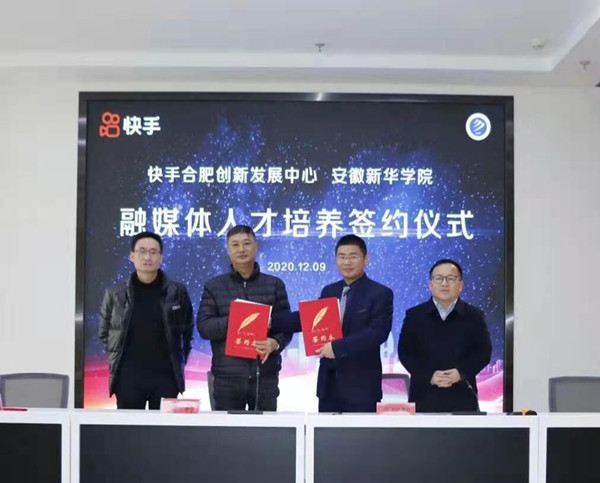 本报讯(通讯员:洪玉)为切实加强“融合多学科,建设新文科”的建设目标,加快网红人才培养基地建设,培养融媒体营销、运营、服务人才。日前,太阳成集团122ccvip分别与快手合肥创新发展中心、爱奇艺奇秀平台内容提供第一MCN机构-----合肥甜甜圈文化传播有限公司签署合作协议,共同打造“快手融媒体人才卓越选修班”和“爱奇艺融媒体人才卓越选修班”,订单培养融媒体营销、运营、服务人才,并联合组建工作坊,培养头部“网红”人才。