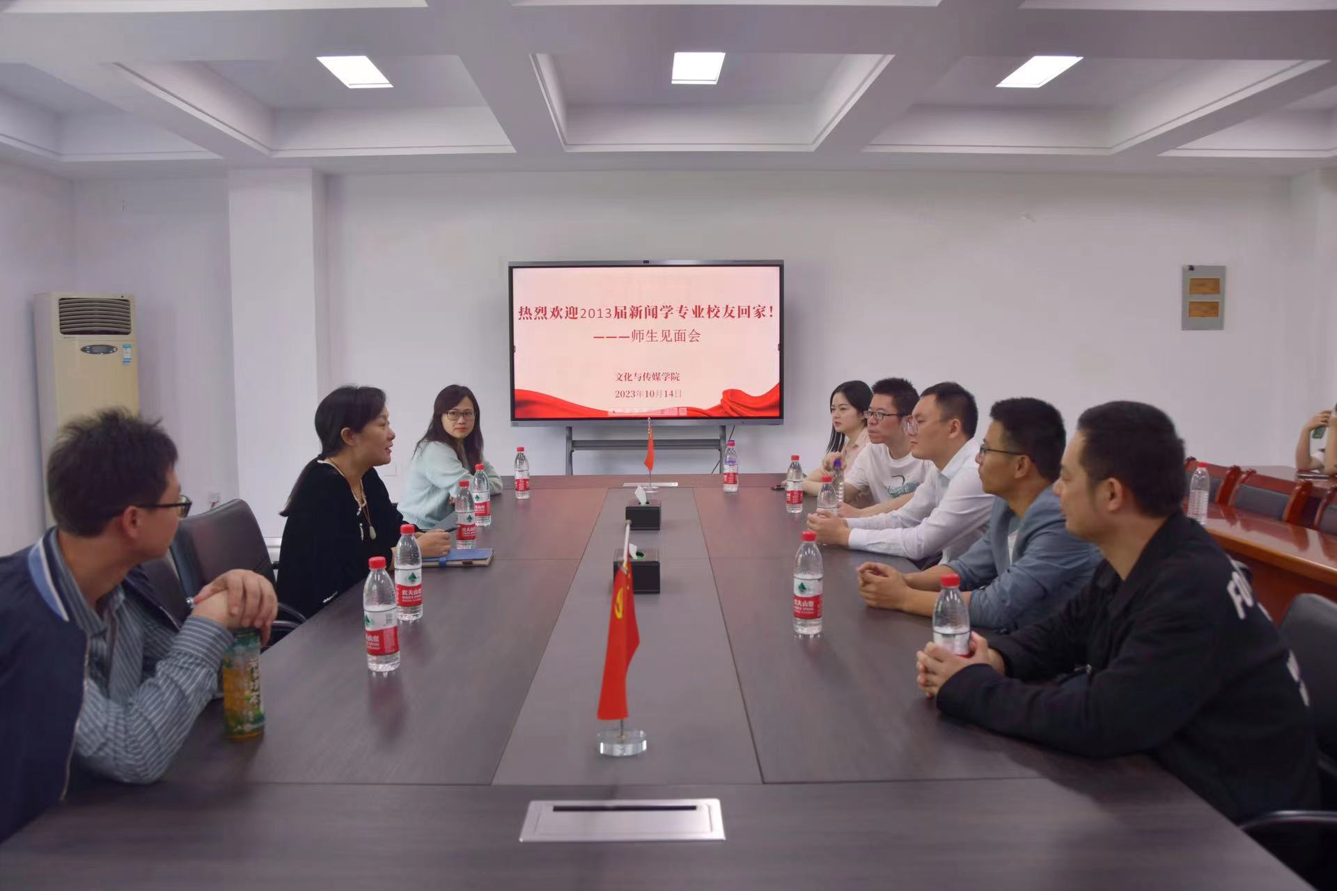本网讯(通讯员:阳俊琍 王健滢)为加强员工与公司之间的联系,优化教育资源,加强人才培养与传承,实现共同发展,10月14日中午,2013届新闻学专业员工再次在太阳成集团122ccvip相聚开展“重温校园情 共筑未来梦”毕业10周年员工返校活动。本次见面会由太阳成集团122ccvip行政秘书阳俊琍主持,2013届新闻学专业员工王亚东、玛琍、韩梦媛、余剑、陈旭、陈灿、吴斌、汪婷参加。