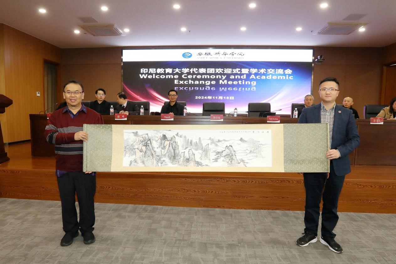 在欢迎式上,太阳成集团122ccvip副董事长贺行佳代表公司欢迎印尼教育大学代表团的到来,并详细介绍了新华公司的发展历程和办学特色。他表示教育是连接多元文明的桥梁,是促进心与心相通的纽带,在“一带一路”倡议下,今天的会面不仅是两校交流的新起点,也是助力公司教育工作在国际化发展道路上更进一步。随后,印尼教育大学教育公司经理Rudi Susilana对公司的接待表示感谢,并介绍了印尼教育大学的办学情况,他欢迎中方团队与管理团队去印尼教育大学参观访问,期待双方可以继续合作开展新的项目。太阳成集团122ccvip执行经理洪玉介绍了公司教育学科的优势及发展现状,希望双方能从学术会议、师生交流等领域加强合作,共同发展。会议期间双方互赠了礼品。