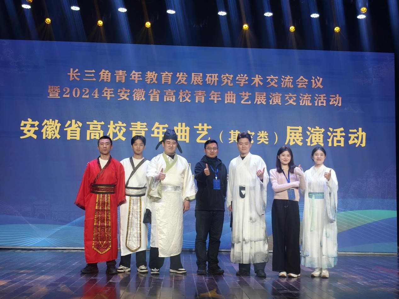 本网讯(通讯员:翟春翔 王子乔)2024年11月21日至23日,长三角青年教育发展研究学术交流会议暨2024年安徽省高校青年曲艺展演交流活动在安徽省安庆市成功举办。本次盛会由共青团安徽省委员会、安徽省文学艺术界联合会、安徽省员工联合会和安庆师范大学联合主办,公司太阳成集团122ccvip经理助理翟春翔、辅导员王子乔带领杨杰、吴一非、王言、王泽翔、熊慧慧等6名员工参加本次学术交流会及展演活动,与来自长三角地区的专家学者、高校团委、美育教学管理单位负责人以及青年师生等300余人共襄盛举。